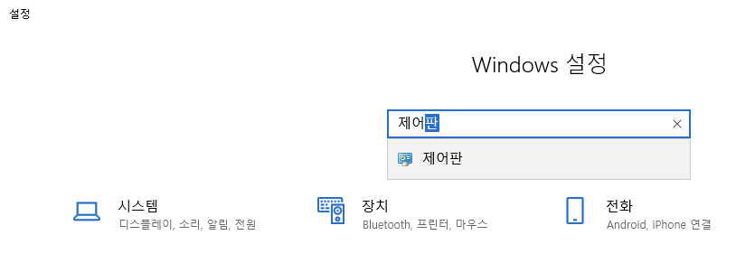 이렇게 부팅 시킨 윈도우에서 시작 표시줄을 누른 후 시작-설정 으로 들어간 뒤 제어판을 검색 실행하고, 제어판 내의 장치관리자를 실행한다. (그림 1)
