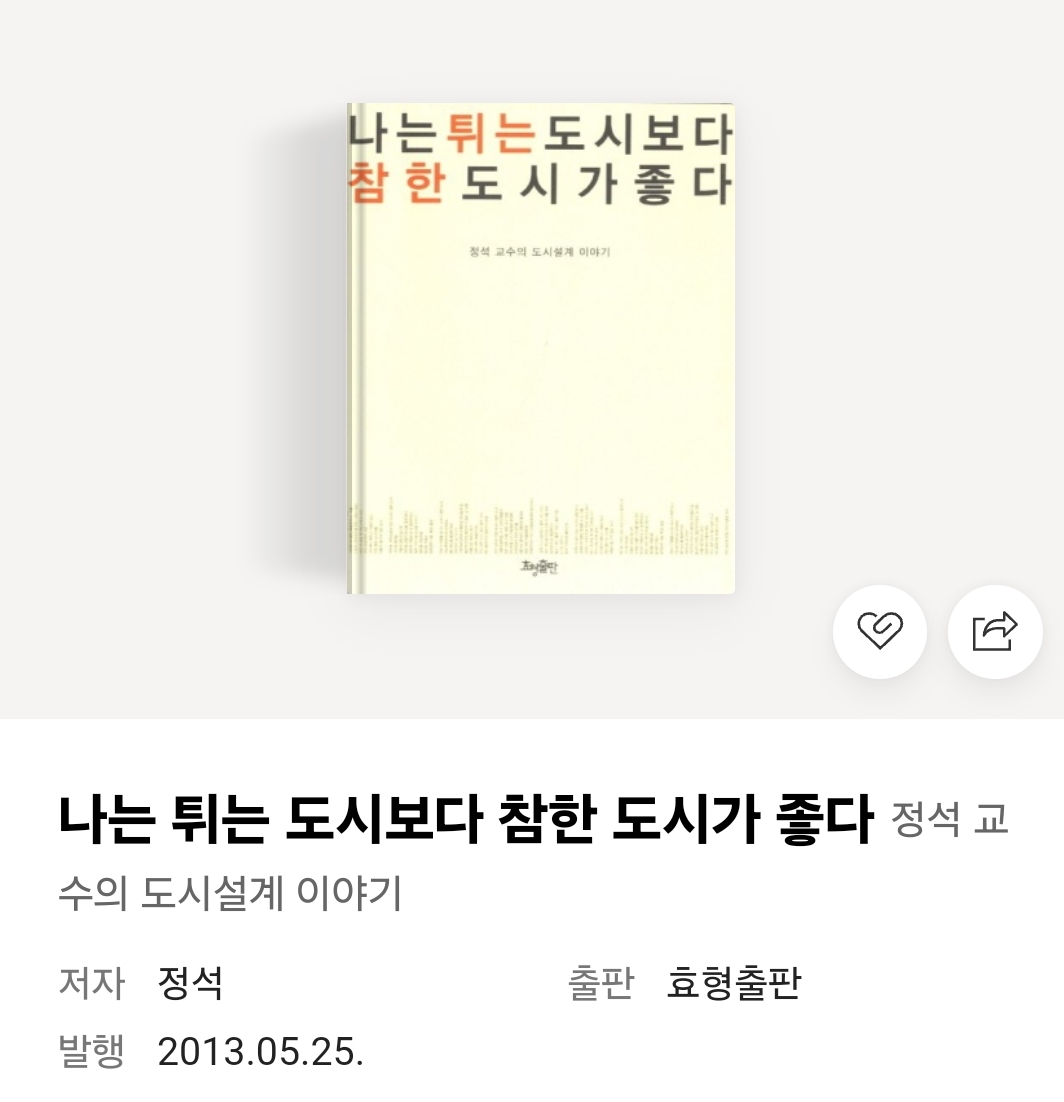 이것도 휴가기간 읽은 책. 도시설계를 하는 교수님의 책이다. 서울 위주의 이야기이다 보니 살아보지 않은 나로서는 체감하기 어렵지만, 그래도 우리나라의 대표도시인 서울의 이야기 이다 보니 어느 도시에나 적용이 가능할수도 있겠다 싶기도 하다.